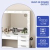 - This makeup desk includes 2 standard power outlets, 2 USB ports, and a built-in holder for your hair dryer—making it easy to charge your devices and use styling tools. Perfect for bedrooms, dressing rooms, salons, or live streaming setups, it combines convenience and functionality in one stylish space.