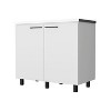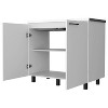Built to last with a durable heavy-duty aluminum countertop, this cabinet features stylish slender legs, two large doors, and internal shelving, providing both functionality and elegance to any kitchen space. Whether you're renovating your kitchen or in need of additional storage, the 2 utility sink and cabinets offers the perfect combination of durability, style, and practicality, all wrapped in an elegant white manufactured wood finish.