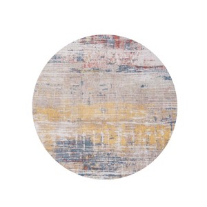 Add some artistry to your room with this 5-foot white round abstract non skid area rug. This geometric round shaped rug features a abstract pattern in white that combines a good looking print with a unique and updated shape. The mix of shape, color, and design gives this rug refreshing visual interest. This smaller sized rug is just what you need for your walkway, or in front of door, cabinet, refrigerator, or chair. 48-inch h x 48-inch w x 0.12-inch d