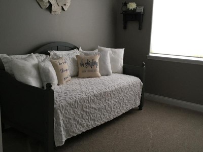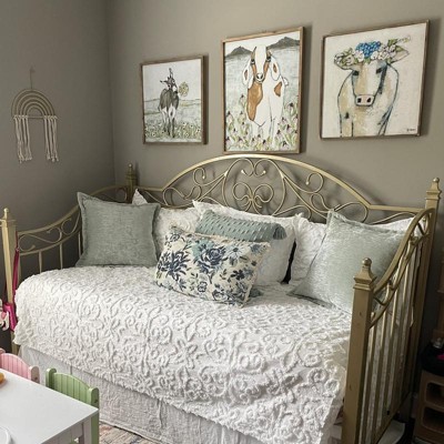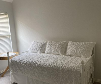 Give your guest bedroom a soft and cozy look with the 5pc Amber Tufted Cotton Chenille Daybed Set. This daybed cover features a classic medallion design that adds dimension and charm to the top of the bed. Three matching shams repeat the pattern seen on top of the bed to create a beautiful coordinated look, while the bed skirt provides an elegant finishing touch. Made from cotton chenille, this cottage-inspired daybed cover set is machine washable to make cleaning a breeze.