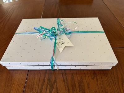 Beautiful gift wrapping is made easy with the White and Gold Scatter Dot Large Square Gift Box from Sugar Paper™. This white box with gold foil detail is perfect for odd shaped gifts or for anyone who needs to wrap on the go. A bestselling simple and classic design made with the attention to detail Sugar Paper is known for. Festive for the holidays or year-round gifting.