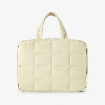 White Checkered Makeup Bag - Large Capacity, Opens Flat with Dividers. Travel Toiletry Organizer for Women & Girls White Standard