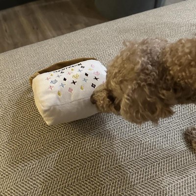 One of our most fetch-ing designs, our Chewy Vuiton Purse Toy is