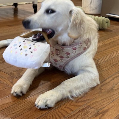 thee must-have accessory for your furry fashionista! Your pup will enjoy the elegant feel of this plush purse toy in their jaws, while the interior squeaker makes your pooch the envy of the dog park. Our Chewy Vuiton Purse Toy comes in three sizes to accommodate pampered pooches of all proportions! Our XL size even features a durable mesh lining for the fabulously furrrrr-ocious.