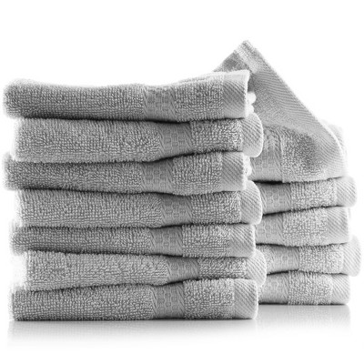 White Classic Luxury 100% Cotton Washcloths Set of 12 - 13x13"