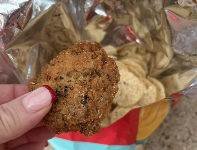 This taste good , but if you don’t want them all in one setting better have a ziplock Bag to put them in. The bag is absolutely horrible , rips way down to bottom -