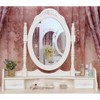 This vanity set comes with a matching stool and an adjustable round mirror, so you have a spot to get ready in the morning and finish your bedtime routine. Each piece is made from engineered wood with a crisp, white finish, and it features carved flower accents along with turned detailing and cabriole legs for a more traditional look. Two drawers on the tabletop, two drawers underneath, and an upper shelf give you ample room to keep jewelry, makeup, and more organized. The stool's seat cushion is upholstered with cotton to support you as you sit.