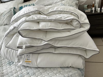 I received this duvet insert as a member of the #heybullseye program in exchange for my honest review! First, the insert was shrink wrapped and in a nice protective box. Upon getting it out, you could feel the quality! It doesn't feel cheap, it's not lumpy like most down and while it has some "weight"(nothing like the feel of a weighted blanket) this did not disappoint. Enough weight for this time of year, but not too heavy or warm! I keep the house 66° year round, and i was able to handle the warmth and weight! Love it! It fit nicely in my duvet cover, but if you like the white white look, it could really do well without a cover! Love it! Highly recommend!