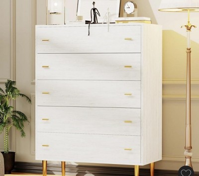 White Dresser for Bedroom, 48" Tall Dresser with 5 Drawers, Chest of Drawers with Storage, Vintage Wood Dressers