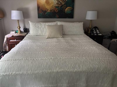 White Fringe Textured Cotton Bedspread & Sham Set, Soft Lightweight Layering - 1 of 4
