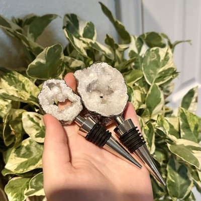 - WINE BOTTLE STOPPER WITH REAL SPARKLING GEODE - This silver-plated white geode topper makes for an eye-catching, decorative bottle stopper. It’s a perfect fit in any bartender kit or bar set for anyone who loves crystals and natural decor