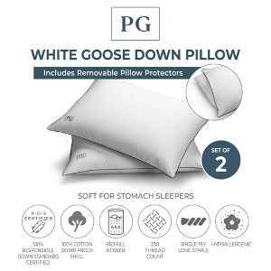 White Goose Down Pillow with 100% Certified RDS Down, and Removable Pillow Protector