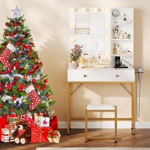 White Makeup Vanity Desk Set with Mirror, 3 Adjustable Lighting Modes, 2 Drawers