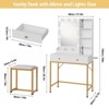Vanity Desk, Professional LED with Mirror, Charging Station, Adjustable 3 Color Lighting Makeup Table, Stool, Storage, Anti-Tip Engineered Wood Dressing Table for Women, Bedroom