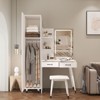 - Spacious and Convenient Storage: The slim tall wardrobe features two internal compartments and a removable hanging rod, providing ample space for clothing organization in small space. The dressing table includes two drawers and three open shelves, offering ample storage space for cosmetics, accessories, and other essentials.