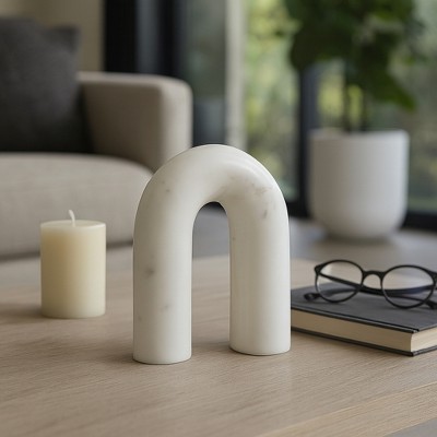 Elevate your home or office decor with this exquisite white marble decorative object, a perfect blend of modern minimalism and timeless elegance. Crafted from high-quality natural marble, this sculptural piece showcases a smooth, polished finish with subtle veining, making each item uniquely beautiful. Designed to complement contemporary, Scandinavian, and minimalist interiors, this decorative accent adds a sophisticated touch to any space. The sleek arch shape provides a harmonious balance of structure and artistry, making it an ideal focal point for coffee tables, bookshelves, mantels, or office desks. Whether displayed alone or paired with other decor elements, its refined aesthetic enhances the ambiance of any room. The solid marble construction ensures long-lasting durability, offering a sturdy and stable presence that resists wear over time. Unlike mass-produced resin or plastic alternatives, this genuine marble decor piece brings a sense if luxury and authenticity to your home. Its neutral white tones seamlessly blend with various color palettes, making it a versatile choice for different interior styles. Use it as a stand-alone art piece, a stylish bookend, or a decorative element for a curated shelf display. For those who appreciate fine craftsmanship and high-end materials, this marble sculpture is an excellent choice. It also makes a thoughtful gift for housewarmings, weddings, or special occasions, offering a timeless decorative piece that recipients will cherish for years. Upgrade your interior with this stunning white marble accent and experience the perfect blend of simplicity and sophistication. Add it to your decor collection today and transform your space with a touch of modern luxury.