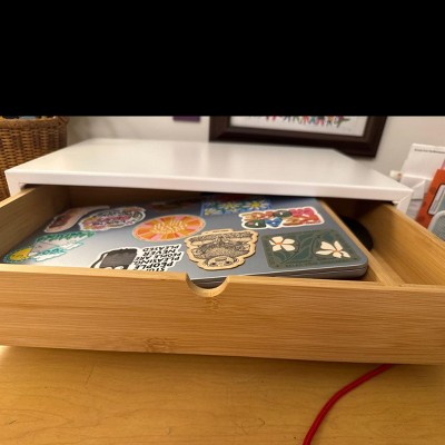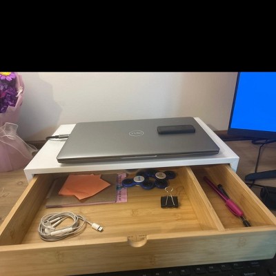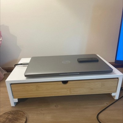 White Monitor Stand with Drawer - Brightroom™: Desk Organizer, Office Supplies, Bamboo & Steel, Monitor Riser