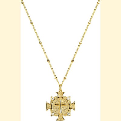 - Handmade white freshwater pearl cross necklace on a thin gold-filled/silver satellite chain.