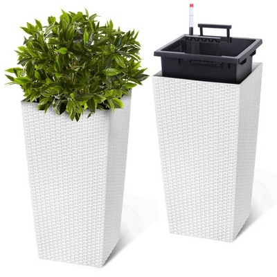 White Plastic Self-Priming Planter with Water Level Monitor, Wheels, Drainage Hole, Hidden Handle, Planter Pots for Garden, Patio, Balcony, Lounge