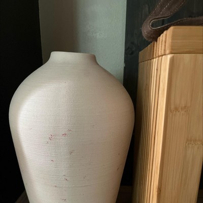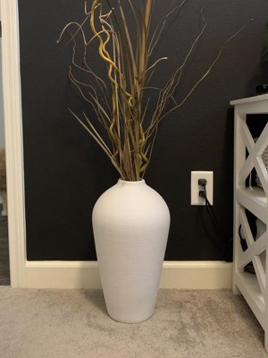 The Threshold Floor Vase is beautifully designed in a round tapered shape and made with high quality textured ceramic material. It comes in a neutral shade of white that will easily enhance the look of any room in your home. It looks amazing in my living room area and I have received many compliments.