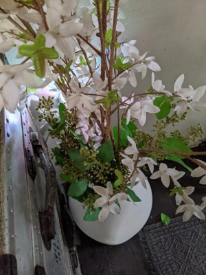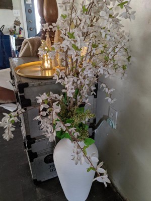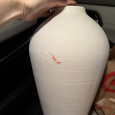 This vase was not only a great size but a wonderful texture on it that created a different feel in the room. You would think the opening is small at the top but it still held four standard stems with no bending since the vase is so tall. White makes it so easy for different flowers for different seasons. I love it.