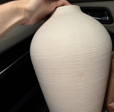 Just the right piece to finish my new living room. Never had such a large vase but love how I can put different colors of flowers or just greenery in it to change up the look. Very sturdy and well made. Worth the price.