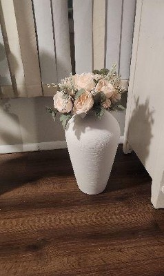 This white textured floor vase is nice size to add some texture to your home. I like that it isn’t overly large and it blends in well with my existing decor. It feels well made and the opening is the right size so your stems aren’t leaning too much