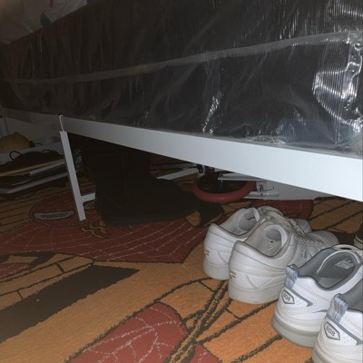 I wish when they’re making these twin size beds,the head and feet part to be higher. It’s so low. Anyways..theres space underneath for shoes and suitcase. I put a twin size box spring with an extra mattress that I have. So it’s high for daughter which she loves. Just wish the frames were higher. Great price,easy assemble,not heavy to lift really. 4.5/5