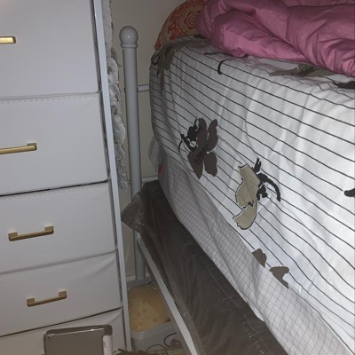 Perfect bed for little girls and great price. Sturdy and plenty of clearance for under the bed storage. Details on bed are super cute as well.