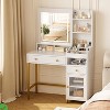 - 【Effortless Organization】This vanity offers a spacious work surface, dual drawers, open shelving, and a private cabinet – everything you need to neatly store your beauty collection. The intelligent layout ensures quick access while maintaining order, transforming any bedroom or dressing area into a tidy sanctuary.