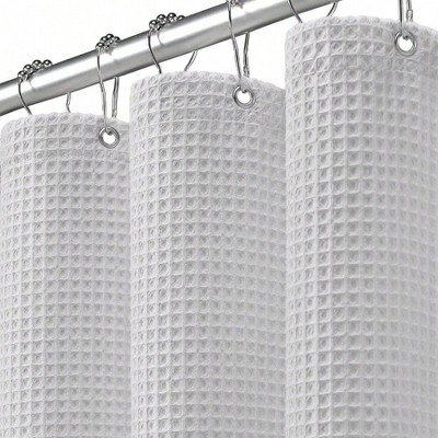 White Waffle Shower Curtain Luxury Hotel Thick Heavy Cotton 72x 72 Inches Bathroom Decor Soft Absorbent Waterproof White standard