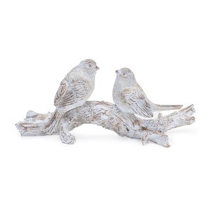 White Washed Birds on Branch Figurine 9.5"L Rustic Decor By Melrose