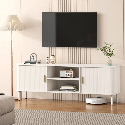 Contemporary Design - The 60-inch TV stand boasts a sleek, minimalistic design in white that seamlessly blends with modern interiors, making it an elegant focal point in your living room.