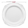 - Product Name: White with Silver Fancy Round Disposable Plastic Dinner Plates (10.25”)
