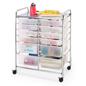Whitmor's 12-drawer plastic drawer storage cart is perfect for the home, classroom, or art studio. This organizer features 12 easy-access drawers. It is great for paper, tools, accessories, crafting, scrapbooking, school or home office supplies. The cart includes 8 small (15.25" x 11.25" x 2.8") and 4 large (15.25" x 11.25" x 5.25") drawers. The chrome top to this storage cart can be used as an extra workspace. The heavy-duty casters make this storage cart easy to put away when not in use. Easy to care for, just wipe with a clean damp cloth to keep it looking as good as new for years to come. The sturdy metal frame is easy to assemble, all you need is a Phillips screwdriver. Assembled Dimensions: 15.35 L x 24.80 W x 31.88 H inches. Whitmor is a 4th generation family-owned and operated business. Since 1946, Whitmor has been dedicated to bringing organization home by creating products that simplify everyday life. Ensuring that those products are built with integrity, value, and innovation is our commitment to you. And our promise is that we will always be here for you should you ever need us as we stand behind our product 100%. Whitmor customer service is available in English and Spanish Monday through Friday from 8 am - 4:30 pm CST. Call us and we will gladly assist you in your language. You may contact Whitmor toll-free at 1-888-944-8667 or via email at help@whitmor.com.