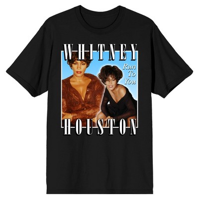 • CUSTOM DESIGN: Vibrant pictures of Whitney Houston decorate the front of this graphic tee while blue letters above spell out the singer's name while her signature appears in blue below the image. Fans of the soul singer will love this fun design.