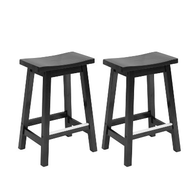 Whizmax 24 Inch Backless Saddle Barstools Set of 2, Counter Height Upholstered Padded Barstools with Curved Surface, Metal Leg and Footrest