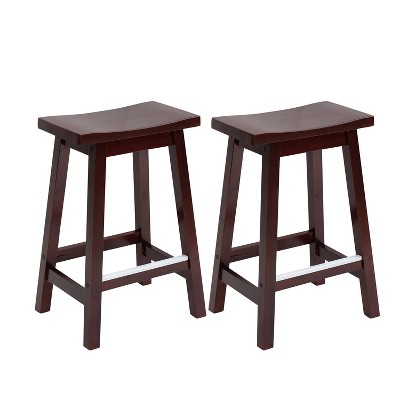 Garvee 24 Inch Backless Saddle Barstools Set of 2, Counter Height Upholstered Padded Barstools with Curved Surface, Metal Leg and Footrest, Brown