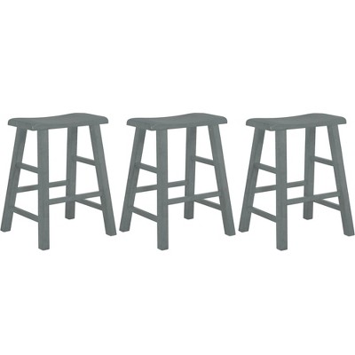 Garvee 24 Inch Backless Saddle Barstools Set of 2, Counter Height Upholstered Padded Barstools with Curved Surface, Metal Leg and Footrest, Gray