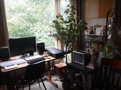 This tree has some nice features: a good basket, a cement base in a pot, moss filling, and wire branches. I like the trunk shape, feel, and texture.