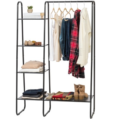 Garvee Bamboo Freestanding Garment Rack, Clothing Rack with Storage Shelf for Bedroom, Balcony, Clothes Store, Clothing Storage Organizer, Natural