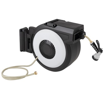 - 【Automatic Rewind System】 No matter how far the hose is stretched, it can be retracted safely and slowly after a slight pull. Our slow-retractable hose reel save effort and avoid damage or injury caused by retracting too quickly. Say goodbye to messy hoses and never spend time rewinding manually.