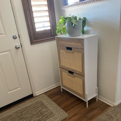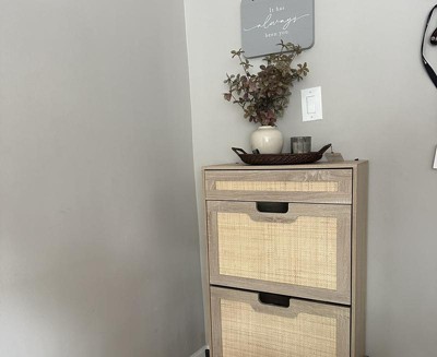 Garvee Natural Rattan 2 Flip Door with 1 Drawer Shoe Cabinet Organizer Freestanding, Shoe Rack Storage Cabinet for Slippers, Sneakers, Heels, Boots