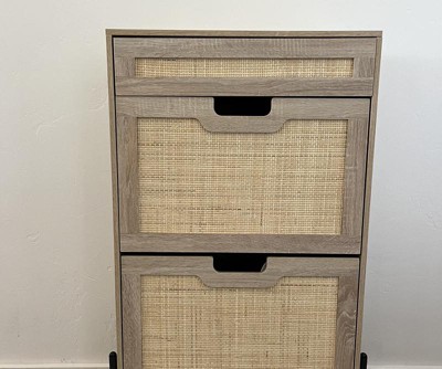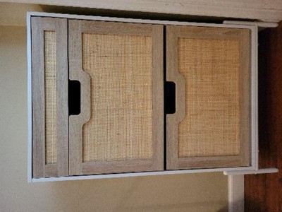 This is just okay. We don’t love it nor are we super happy with it. The color is a lot cooler in person than the online pictures suggested, so it doesn’t quite match the rest of the woods in our room. The drawer isn’t on gliders so it doesn’t pull out very smoothly. The faces of the drawers don’t have equal spacing either. I’d say the positives are that the hinges work well and it was relatively easy to put together. We bought two, only set up one… we’re definitely returning one if not both.