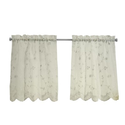 Sheer Tier Elegant Floral Rod Pocket Half Window Curtains for Kitchen Bathroom