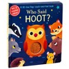 Who said hoot? Was it wolf? No, it was owl! Lift the peek-through flaps to find out which animal makes each noise!