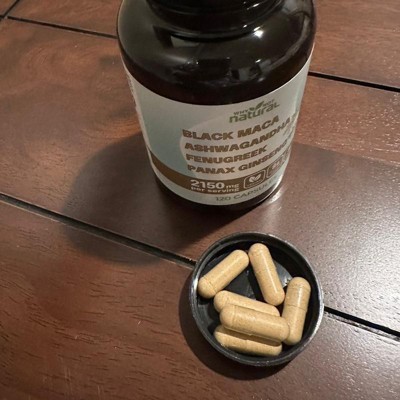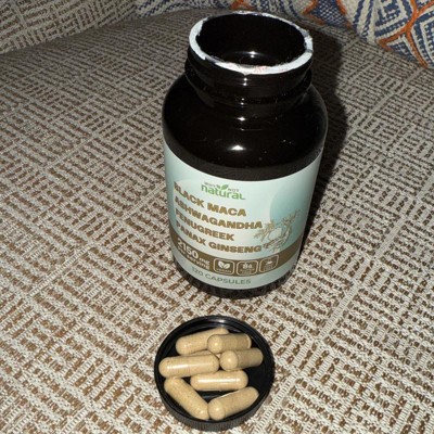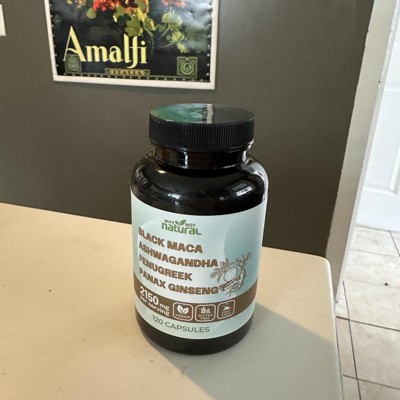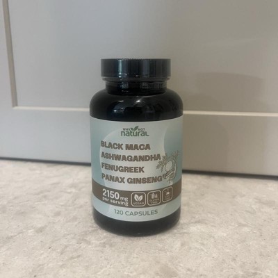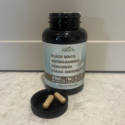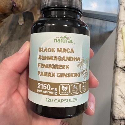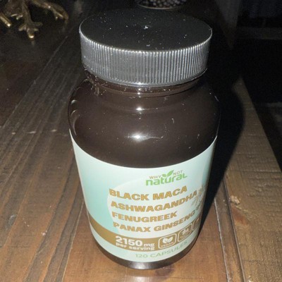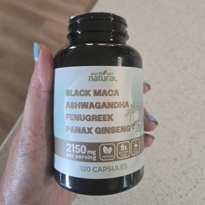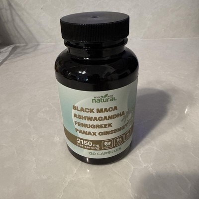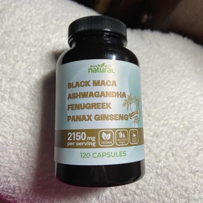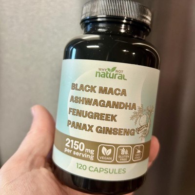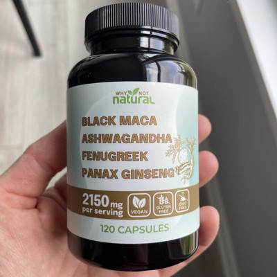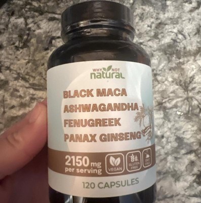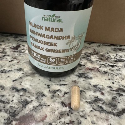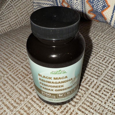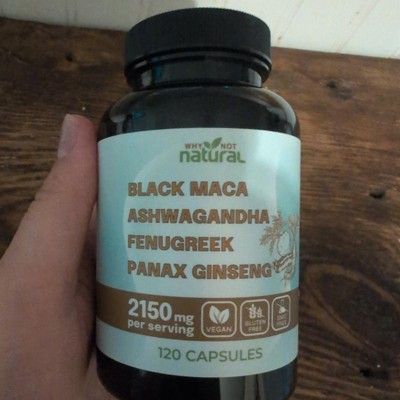 Why Not Natural 4-in-1 Organic Black Maca Root, Ashwagandha, Fenugreek, Panax Ginseng Capsules, Supplement for Men and Women, 120 Capsules