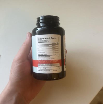 [This review was collected as part of a promotion.] This is my first time trying this supplement, and I'm really impressed! I was honestly a bit hesitant at first, especially with ingredients like garlic and turmetic, but to my surprise there's absolutely no foul smell at all. The capsules are easy to taike, and the combination of Ceyion cinnamon, garlic, berberine, turmeric, and black pepper extract feels like a powerful biend for overall wellness, Love that it's vegan, gluten-free, and non-GMO 100, Definitely a great addition to my daily routine! I received an incentive to write this review.