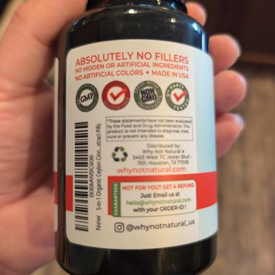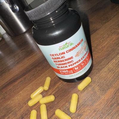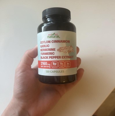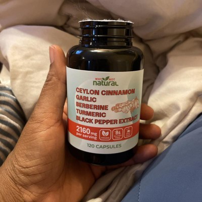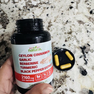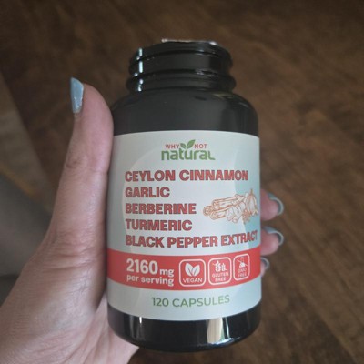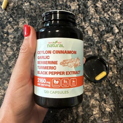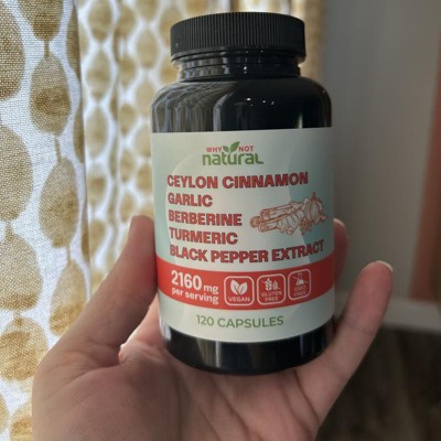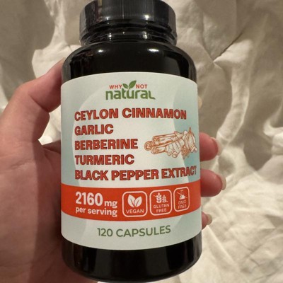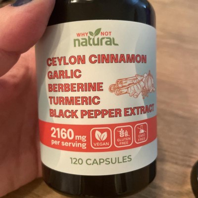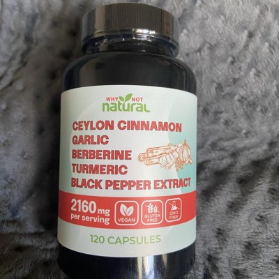 Why Not Natural 5-in-1 Organic Ceylon Cinnamon Capsules with Berberine, Garlic, Turmeric, Black Pepper Extract Pills, 120 Capsules