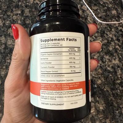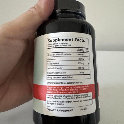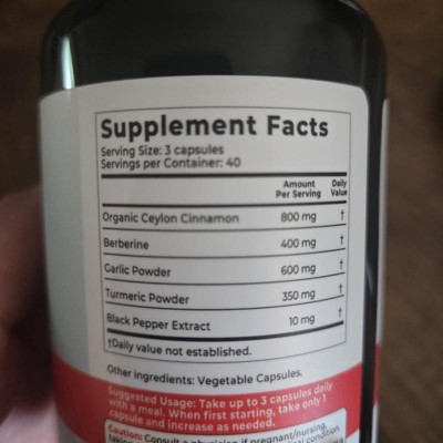 [This review was collected as part of a promotion.] I'm excited to share my review on these supplements! As someone interested in natural health and need a better way of living for my gout and diabetes issues, I was eager to try this out and heard great benefits from these for my condition. The ingredients of cinnamon, berberine, garlic, turmeric, and black pepper extract in one capsule simplifies my supplement routine and makes it a lot easier for me to take than a bunch all at once. It's convenient to have these high-quality, organic ingredients that align with my preference for natural health products. These ingredients help support blood sugar regulation, inflammation reduction, and immune system health. Overally I feel these are potentially beneficial supplements and are a good option for those seeking natural health support. I received an incentive to write this review.